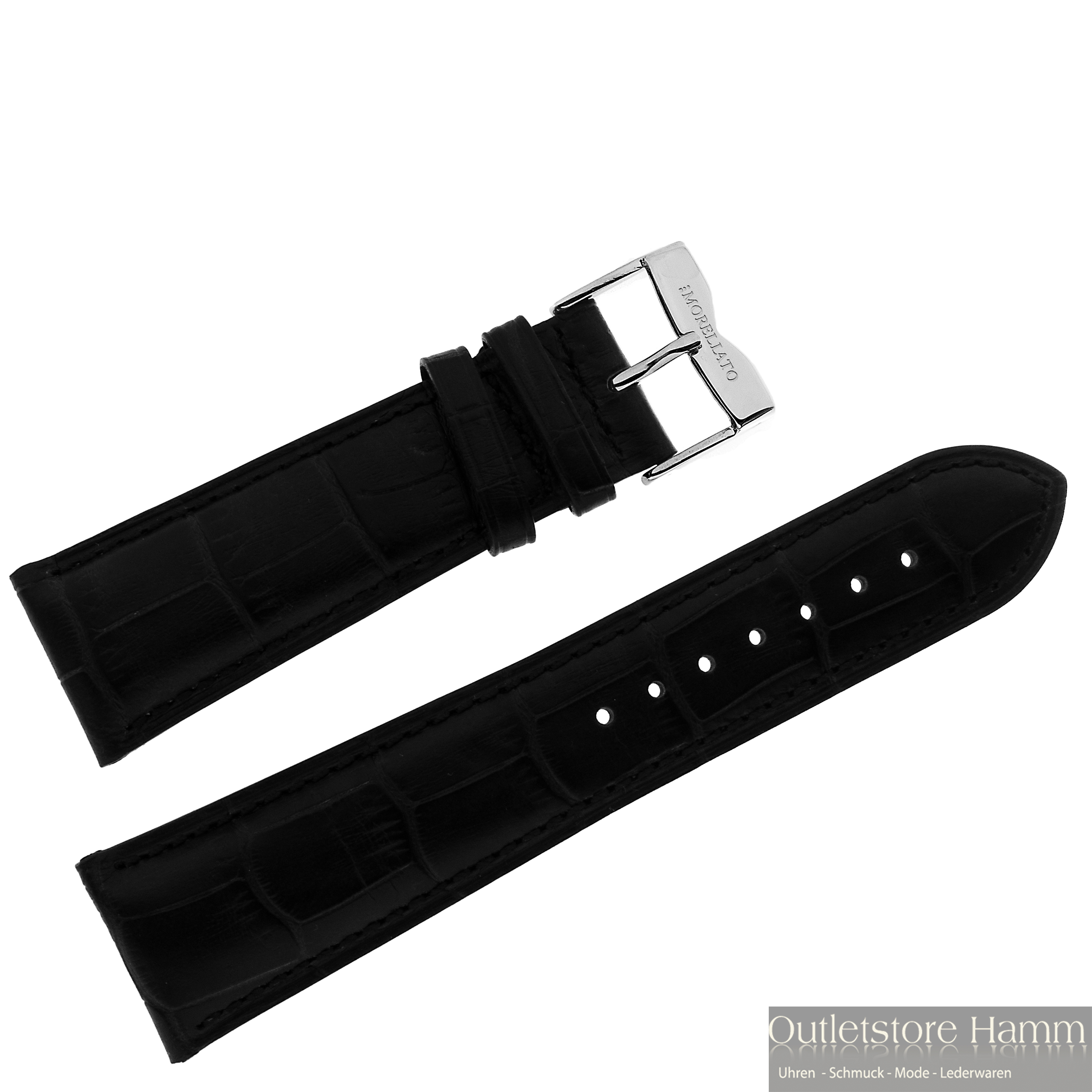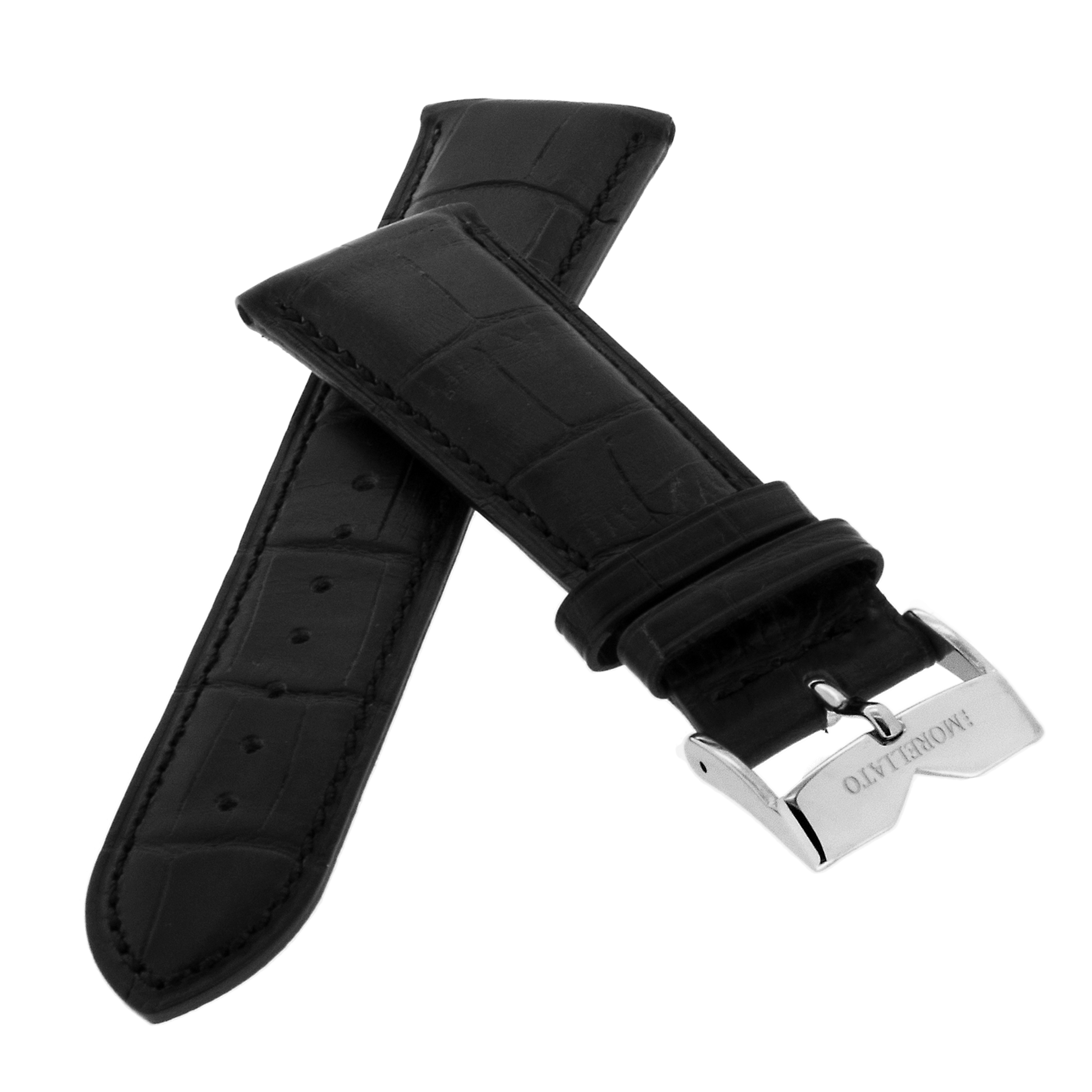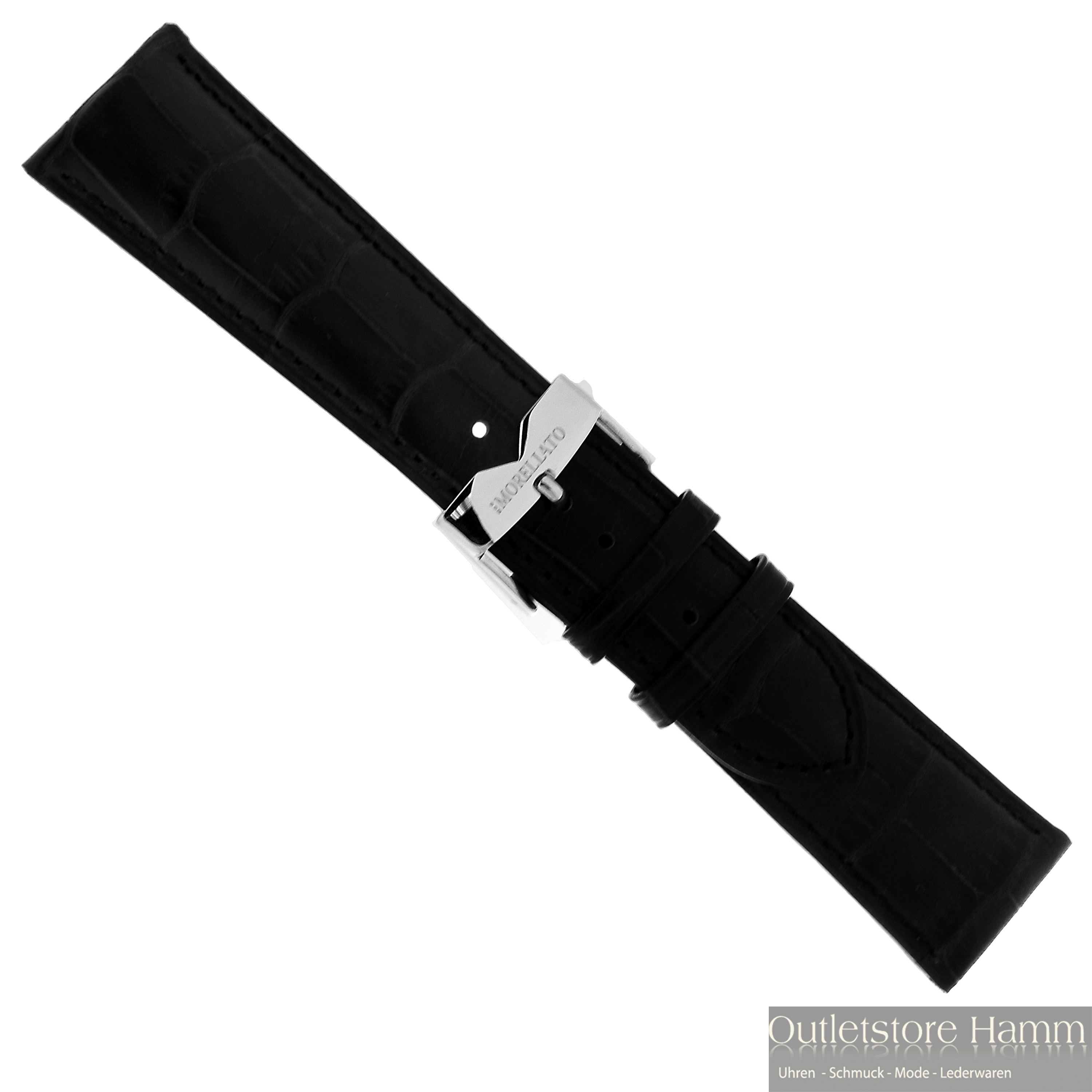 Hochwertig verarbeitetes echt Leder Uhrenarmband, leicht gepolstert mit Alligator-Optik.