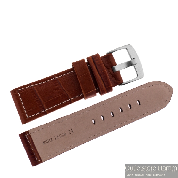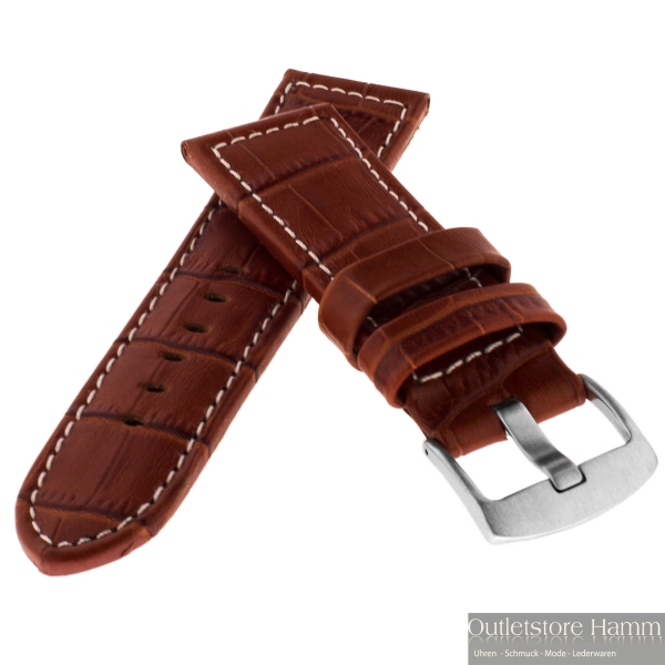 Hochwertig verarbeitetes Uhrenarmband mit Alligator-Louisiana-Prägung.
