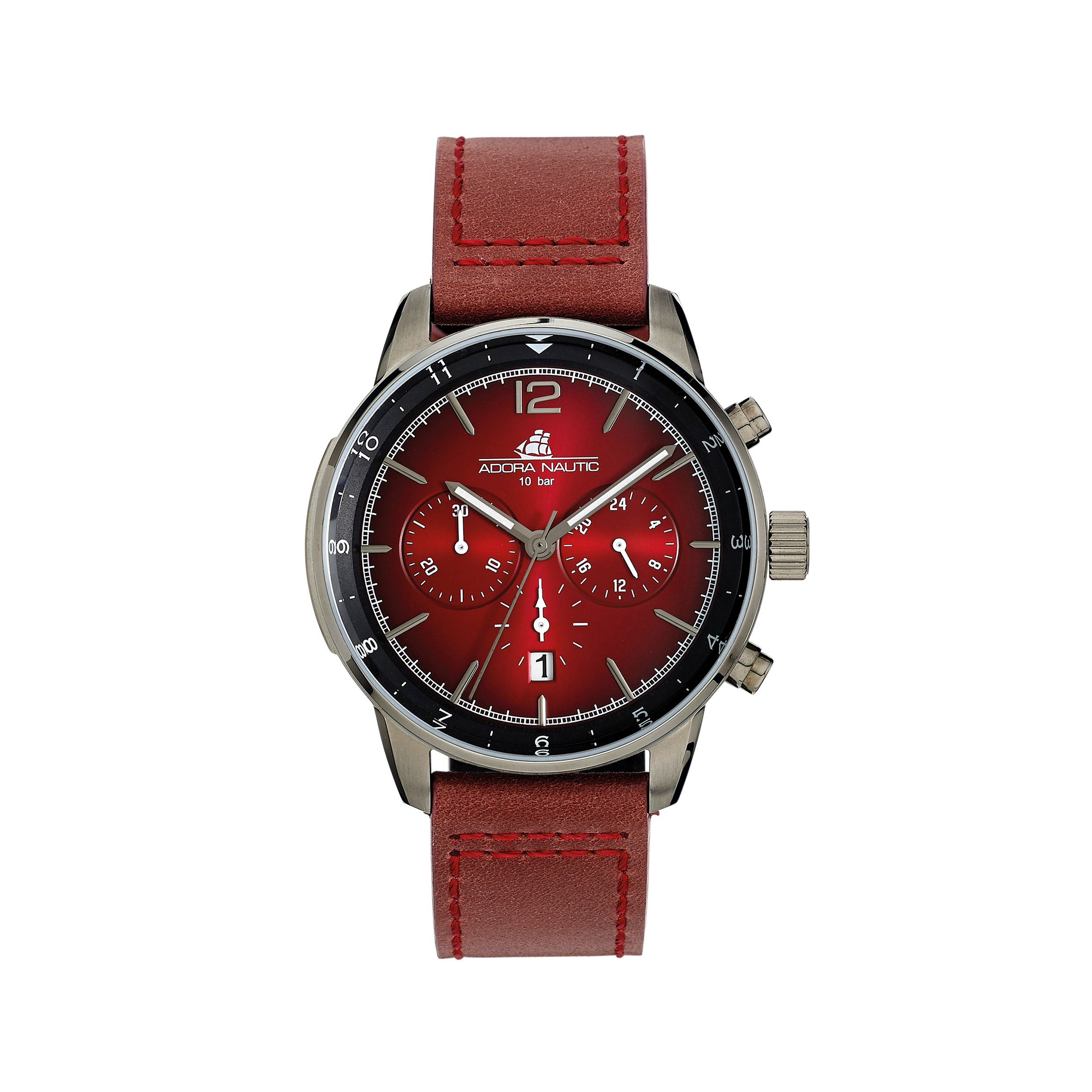 Adora Nautic AN2326 1-205700-001 Herren Uhr Chronograph Edelstahl Leder Quarz 10Bar