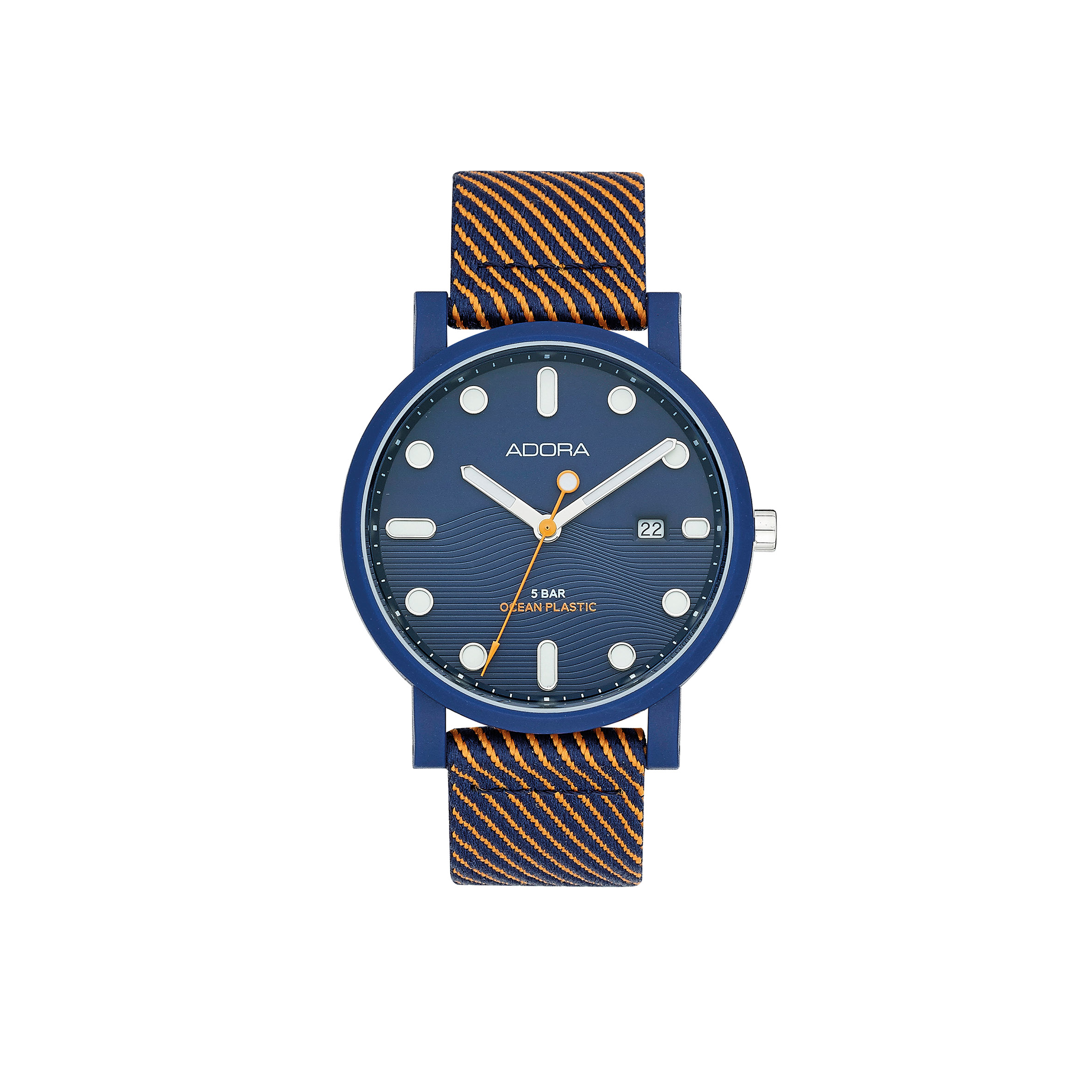 Adora OC2000 Damen Quarzuhr mit Gehäuse und Band aus zertifiziertem Ozean-Plastik, Nylonarmband, Mineralglas und 5 Bar Wasserschutz – umweltfreundlich & alltagstauglich.