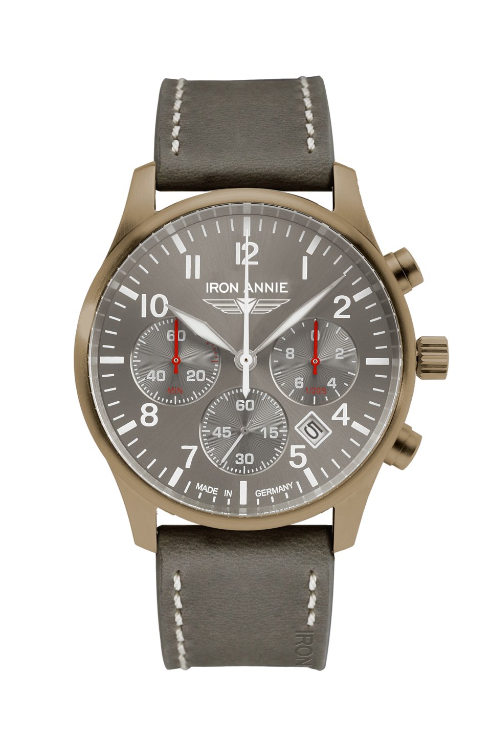- Gehäuse aus Edelstahl, satiniert, bronzefarben-beschichtet