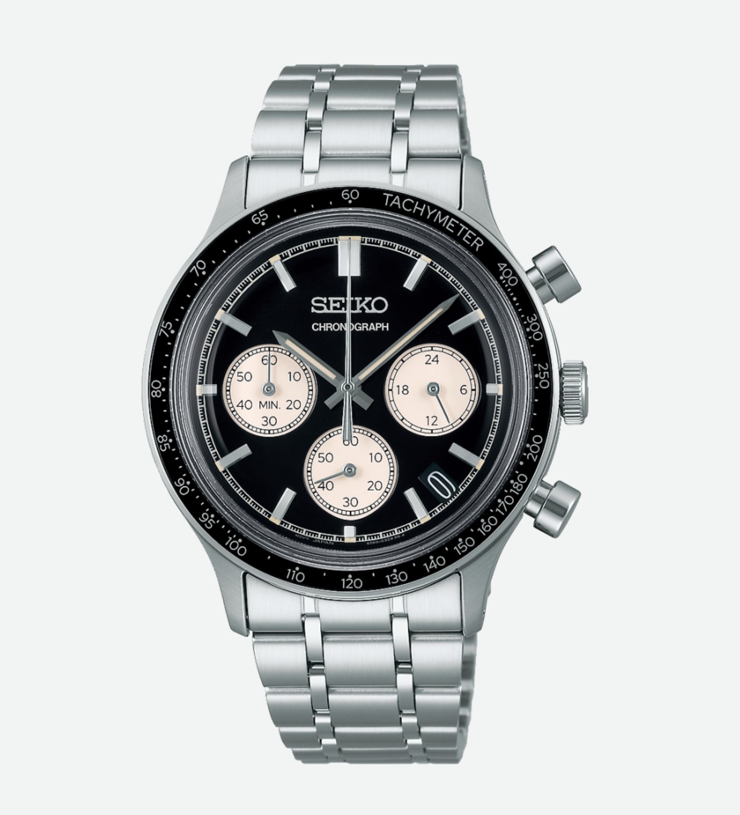Diese Quarzuhr aus der Kollektion Seiko SPORT Kollektion bietet eine ganze Reihe an Funktionen. Das schwarze Zifferblatt verfügt über die drei Chronographenzähler und ist von einer Tachymeterlünette umgeben. Dieses komplett aus Edelstahl gefertigte Modell ist mit seinem Hardlexglas, dem verschraubten Gehäuseboden und seiner Wasserdichtigkeit bis 100 Meter zudem sehr robust.